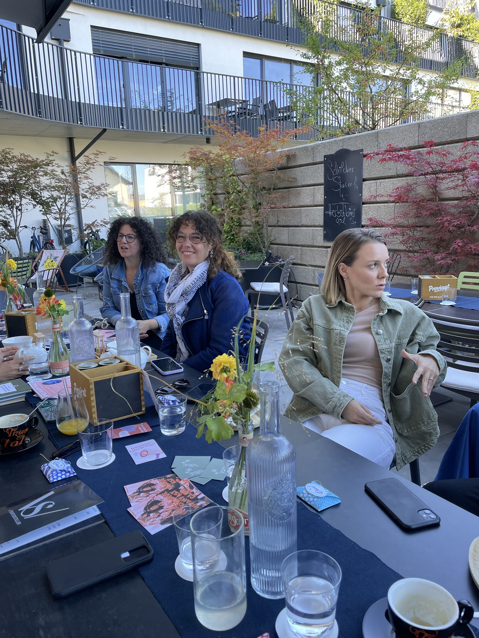 Am Morgen war es noch ein wenig frisch, aber das hielt uns nicht davon ab im "s'Wintersteller" bei Wirtin Sandra, den nachträglichen Sommertag draußen zu genießen. Neue Gesichter waren dabei und wir lauschten den Geschichten, die hinter jeder Idee stecken.